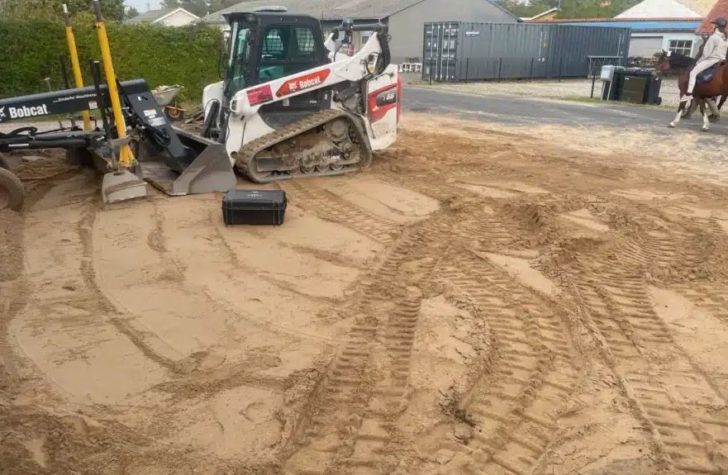 – Afret med grader for ensartet dybde. Test med hest og rytter og finjuster dybde efter behov.